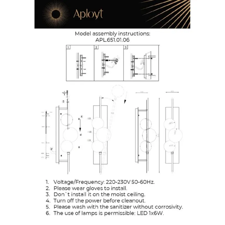 Дизайн светильника Aployt Noel сочетает в себе элегантность и простоту, благодаря чему он легко впишется в любой интерьерный стиль: от классического до современного. Настенный светильник имеет удобную конструкцию, которая позволяет легко установить его на стену.