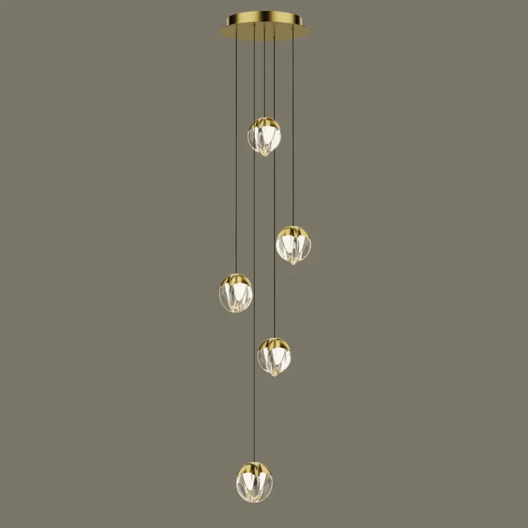 Подвесной светильник Delight Collection MD24001033-5A gold/clear из серии MD24001033 итальянского производителя Delight Collection. В данном светильнике используются лампы с цоколем LED, суммарной мощностью 27 Вт. Модель оформлена в современном стиле и устанавливается на потолок. Она отлично подходит для спальни.