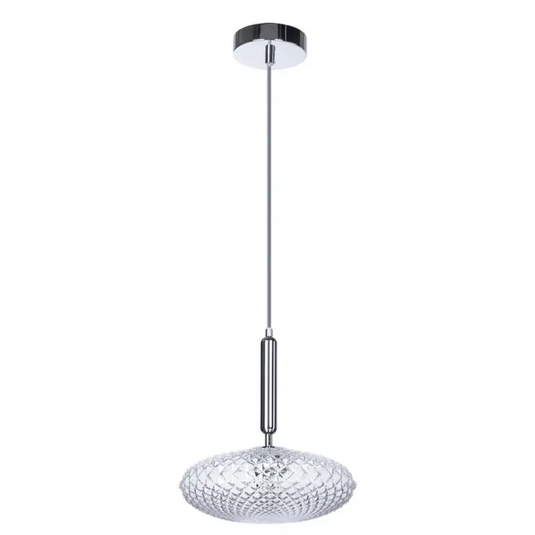 Светильник имеет одноламповую конструкцию и монтируется на потолок при помощи надежного крепежа. Регулируемая длина подвеса позволяет адаптировать высоту светильника в зависимости от высоты потолков и особенностей помещения, что делает его удобным и практичным решением.