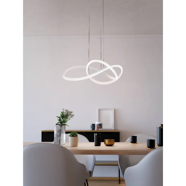 Подвесной светильник Eglo Riaza 390528 из серии Riaza австрийского производителя Eglo. В данном светильнике используются лампы с цоколем LED, суммарной мощностью 40 Вт. Модель оформлена в стиле хай-тек (high-tech) и устанавливается на потолок. Она отлично подходит для спальни.