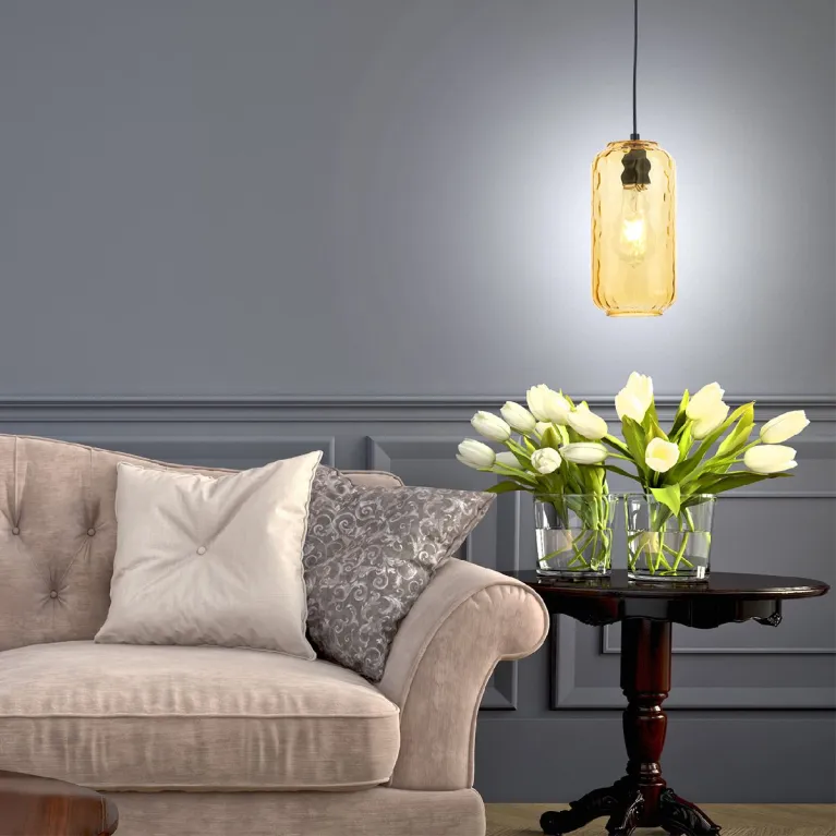 Светильники с стеклянными плафонами желтого цвета прекрасно впишутся в ваш интерьер.