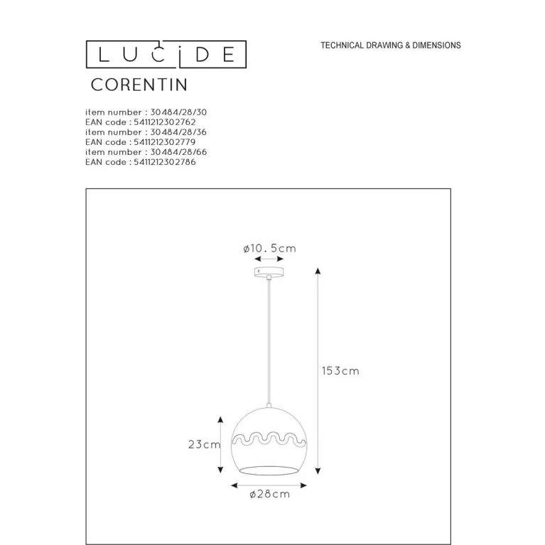 Подвесной светильник Lucide Corentin 30484/28/66 из серии Corentin бельгийского производителя Lucide. В данном светильнике используются лампы с цоколем E27, суммарной мощностью 60 Вт. Модель оформлена в современном стиле и устанавливается на потолок. Она отлично подходит для детской.