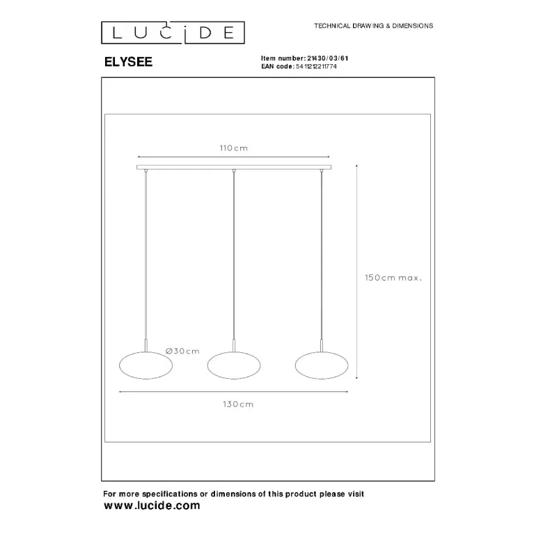 Подвесной светильник Lucide Elysee 21430/03/61 из серии Elysee бельгийского производителя Lucide обеспечивает приятное для глаз освещение на площади 6 м2. В данном светильнике используются лампы с цоколем E27, суммарной мощностью 120 Вт. Модель оформлена в стиле модерн и устанавливается на потолок. Она отлично подходит на кухню.