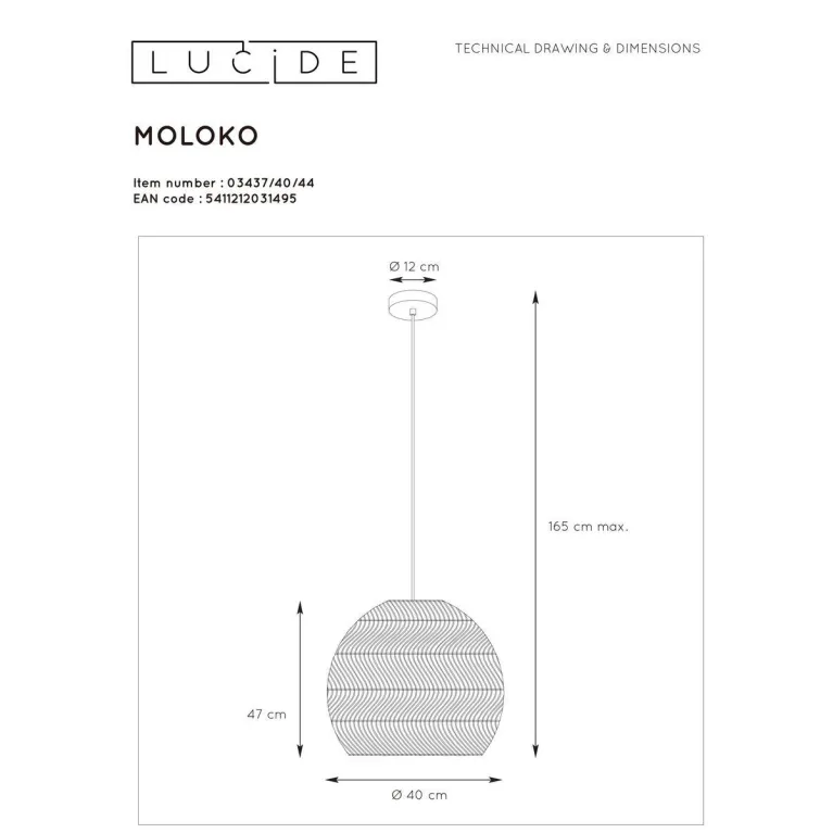 Подвесной светильник Lucide Moloko 03437/40/44 из серии Moloko бельгийского производителя Lucide. В данном светильнике используются лампы с цоколем E27, суммарной мощностью 40 Вт. Модель оформлена в скандинавском стиле и устанавливается на потолок. Она отлично подходит для кухни.