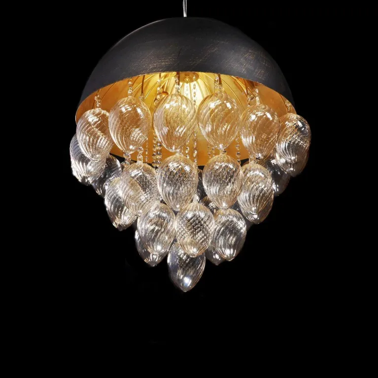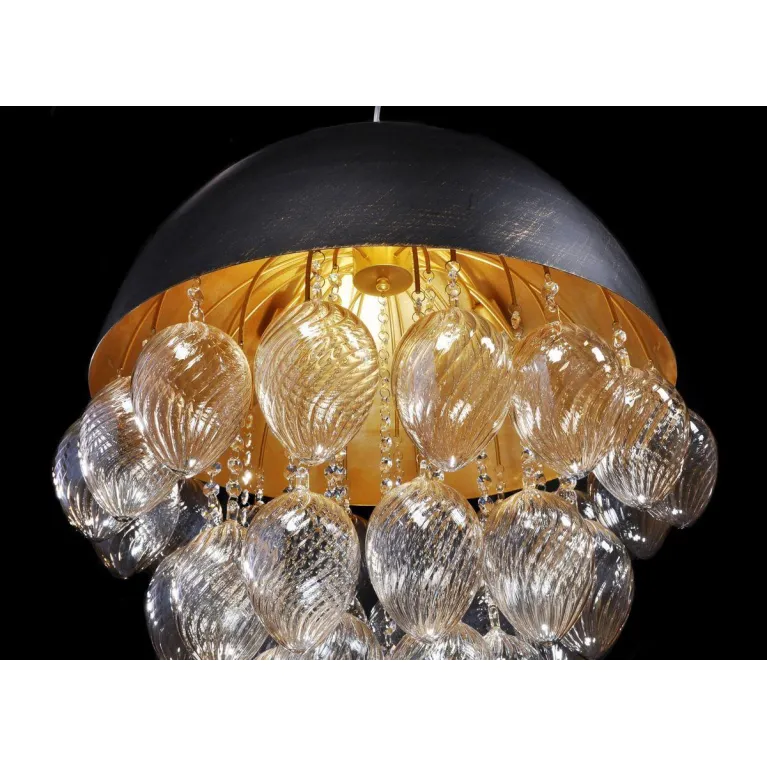 Корпус светильника выполнен из прочного металла с эффектным черным матовым покрытием. Плафоны изготовлены из высококачественного стекла и имеют изящную цилиндрическую форму. Высота светильника составляет 1000 мм, а диаметр — 400 мм, что делает его достаточно габаритным и выразительным.