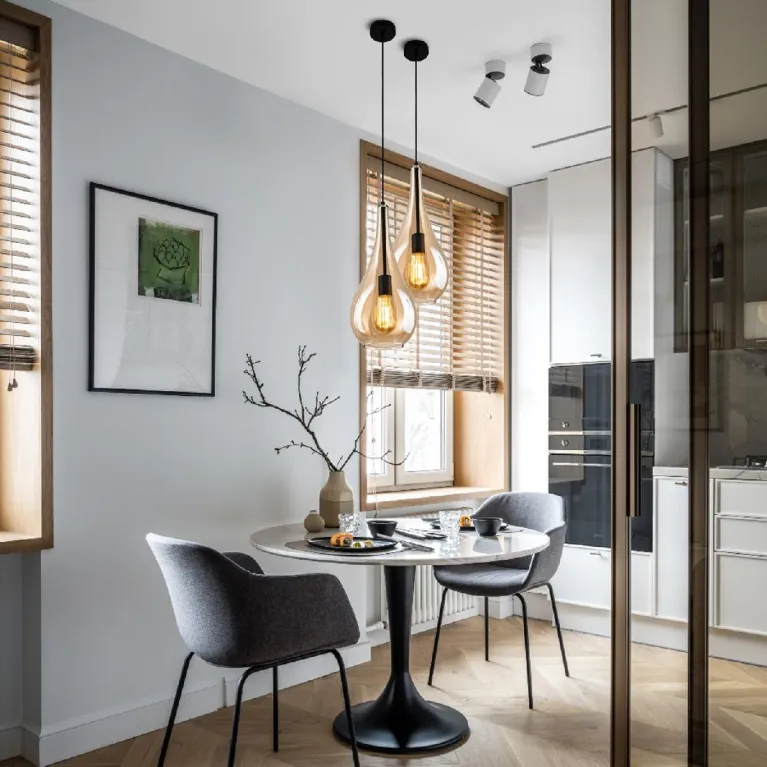 Светильники с стеклянными плафонами янтарного цвета прекрасно впишутся в ваш интерьер.