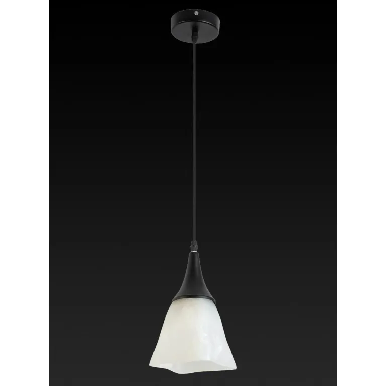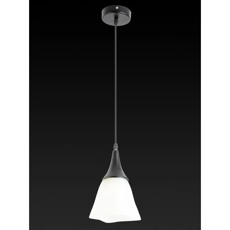 Корпус светильника выполнен из прочного металла с черным матовым покрытием. Плафон из белого матового стекла обеспечивает мягкое и равномерное рассеивание света, что создаёт комфортное освещение в помещении. Светильник совместим с лампами типа E27 и может использоваться как для традиционных ламп накаливания, так и для энергосберегающих или светодиодных ламп, что позволяет подобрать источник света исходя из ваших предпочтений и потребностей.
