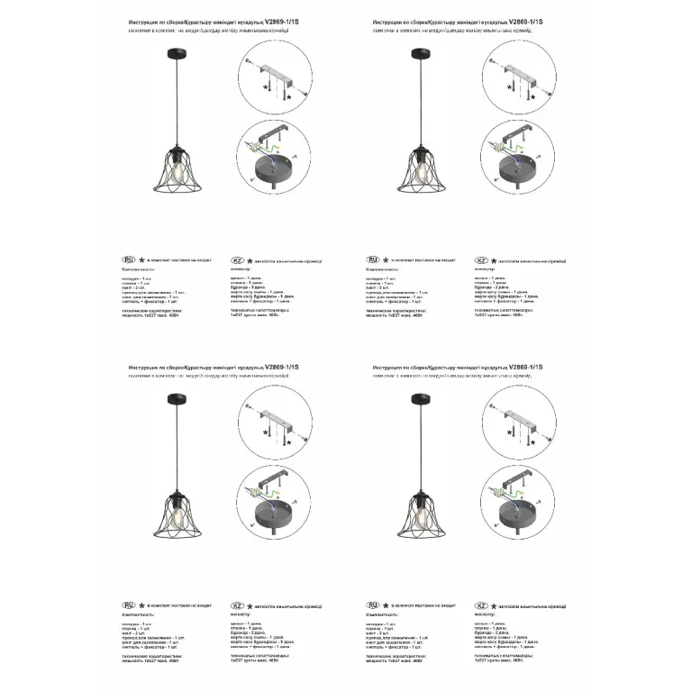 Для работы светильника вам потребуется одна лампа с цоколем E14 (не входит в комплект). Это позволяет выбрать лампу нужной яркости и цветовой температуры, чтобы создать оптимальное освещение в помещении.