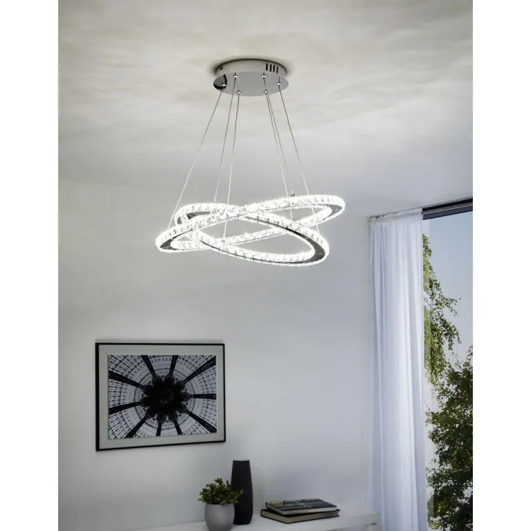 Подвесной светодиодный светильник Eglo Varrazo 31667-73662 — это современное и стильное решение для интерьеров в стиле лофт, индастриал или минимализм. Он прекрасно подходит для освещения гостиной, кухни, столовой или офиса, добавляя помещению современный вид и создавая комфортное освещение.