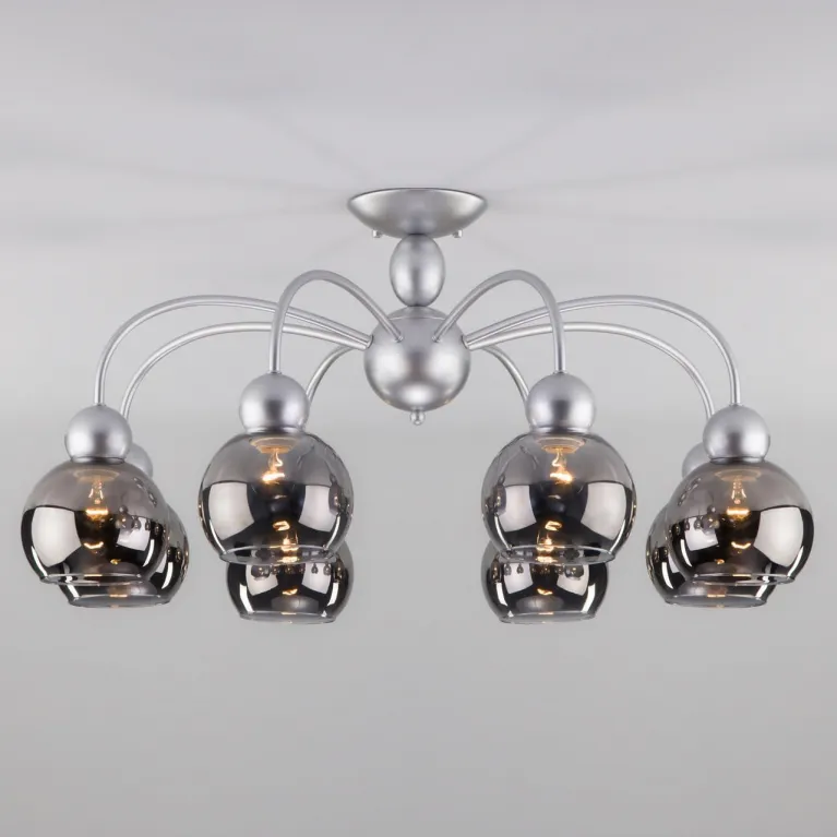 Потолочная люстра Eurosvet 30148/8 серебро из серии Fabia российского производителя Eurosvet обеспечивает приятное для глаз освещение на площади 32 м2. В данном светильнике используются лампы с цоколем E14, суммарной мощностью 480 Вт. Модель оформлена в современном стиле и устанавливается на потолок. Она отлично подходит для гостиной.