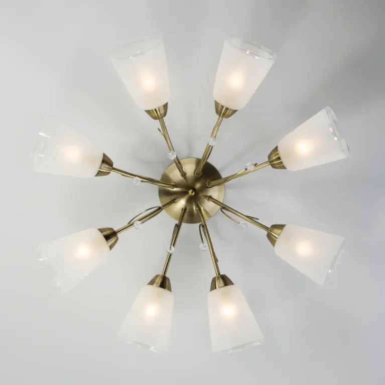 Потолочная люстра Eurosvet 30150/8 античная бронза из серии Patrice российского производителя Eurosvet обеспечивает приятное для глаз освещение на площади 21 м2. В данном светильнике используются лампы с цоколем E27, суммарной мощностью 320 Вт. Модель оформлена в современном стиле и устанавливается на потолок. Она отлично подходит для спальни.