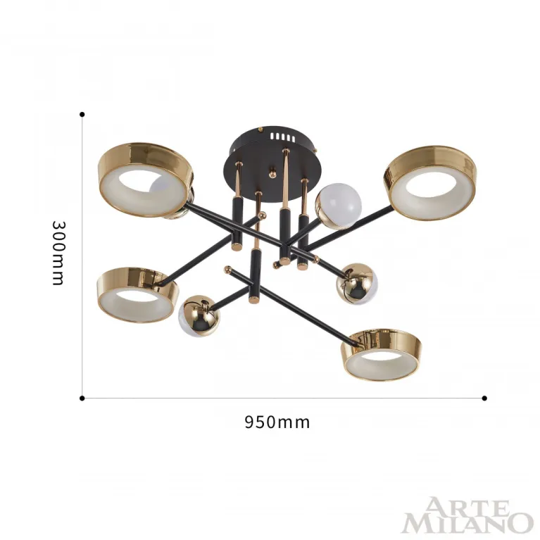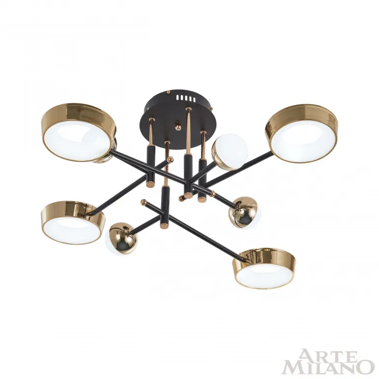 Потолочный светильник Arte Milano Ferrara 273299/8 BK/GD из серии Ferrara-73210 итальянского производителя Arte Milano. В данном светильнике используются лампы с цоколем LED, суммарной мощностью 120 Вт. Модель оформлена в современном стиле и устанавливается на потолок. Она отлично подходит для гостинной.