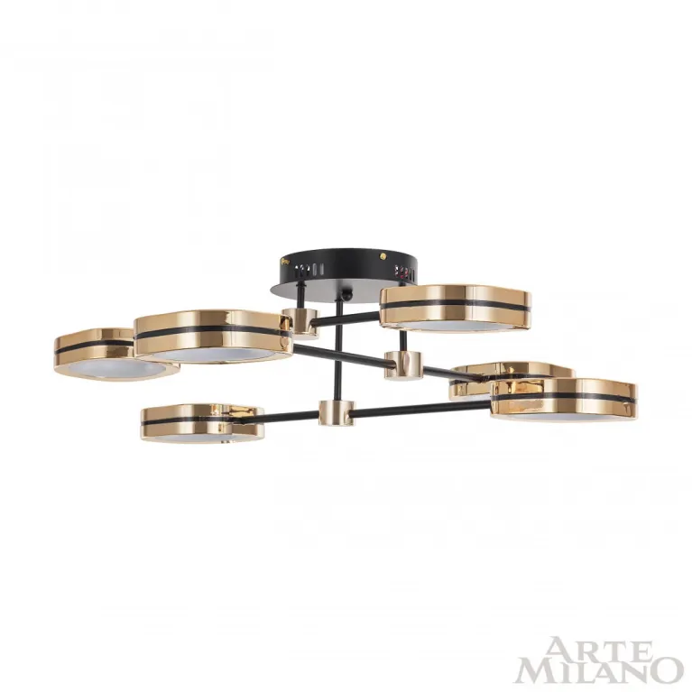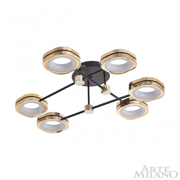 Потолочный светильник Arte Milano Ferrara 277999/6 BK/GD из серии Ferrara-71040 итальянского производителя Arte Milano. В данном светильнике используются лампы с цоколем LED, суммарной мощностью 90 Вт. Модель оформлена в современном стиле и устанавливается на потолок. Она отлично подходит для гостинной.