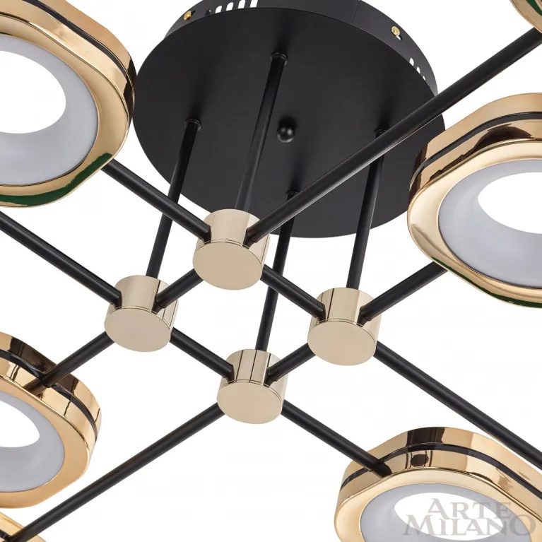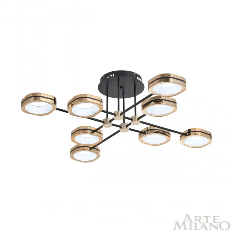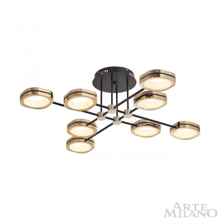 Потолочный светильник Arte Milano Ferrara 277999/8 BK/GD из серии Ferrara-71040 итальянского производителя Arte Milano. В данном светильнике используются лампы с цоколем LED, суммарной мощностью 120 Вт. Модель оформлена в современном стиле и устанавливается на потолок. Она отлично подходит для гостинной.