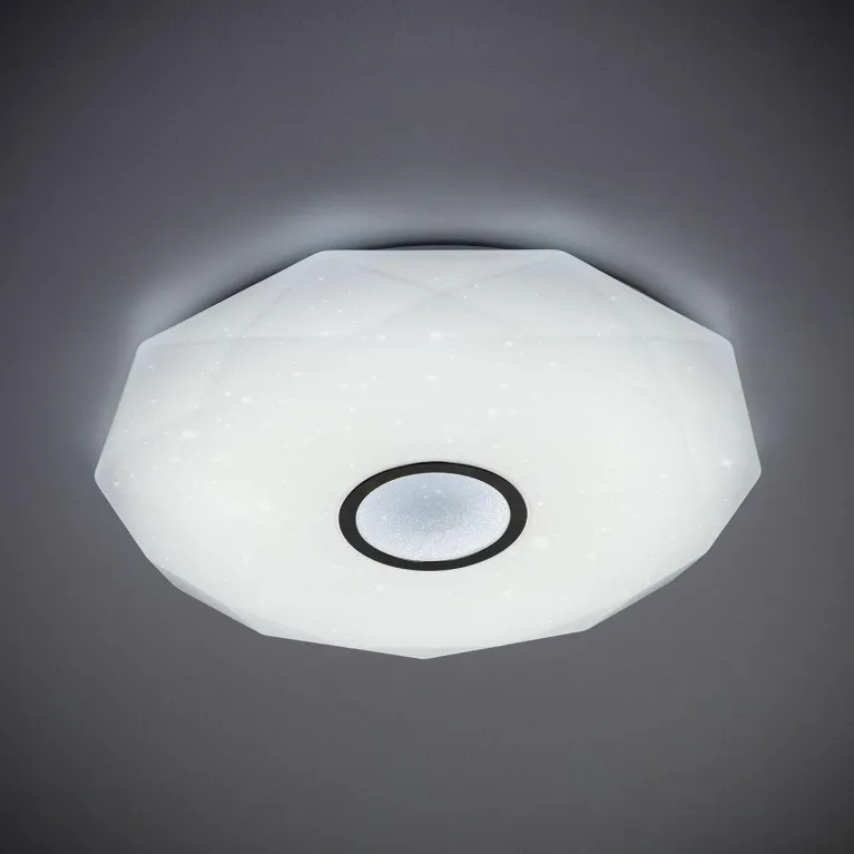 Потолочный светильник Citilux CL71380R из серии Диамант датского производителя Citilux обеспечивает приятное для глаз освещение на площади 33 м2. В данном светильнике используются лампы с цоколем LED, суммарной мощностью 80 Вт. Модель оформлена в современном стиле и устанавливается . Она отлично подходит для гостиной.