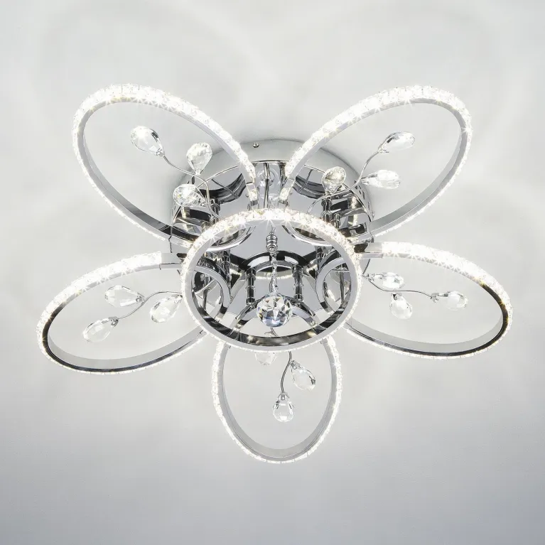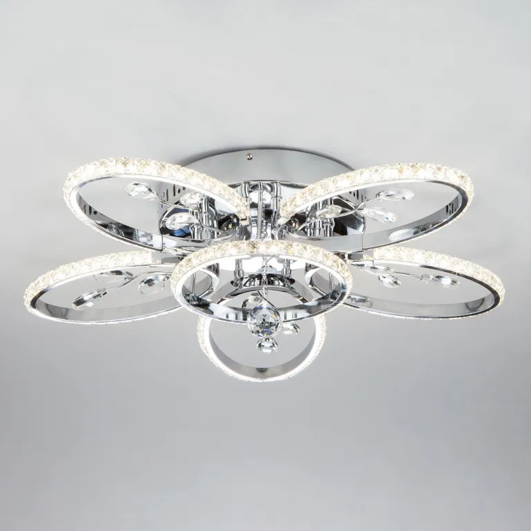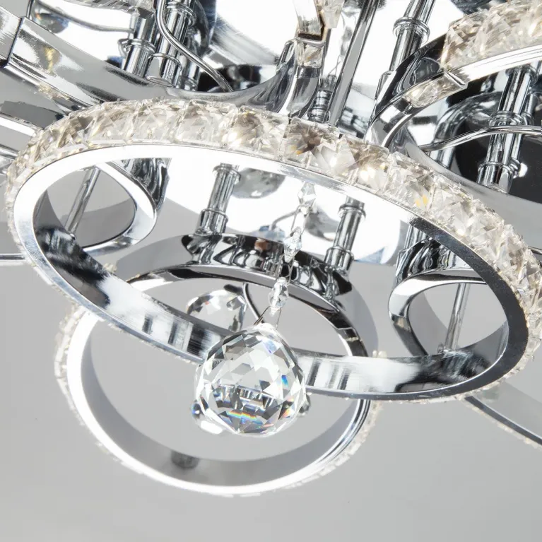 Потолочный светильник Eurosvet 90097/6 хром из серии Soul российского производителя Eurosvet обеспечивает приятное для глаз освещение на площади 21 м2. В данном светильнике используются лампы с цоколем LED, суммарной мощностью 45 Вт. Модель оформлена в современном стиле и устанавливается на потолок. Она отлично подходит для спальни.