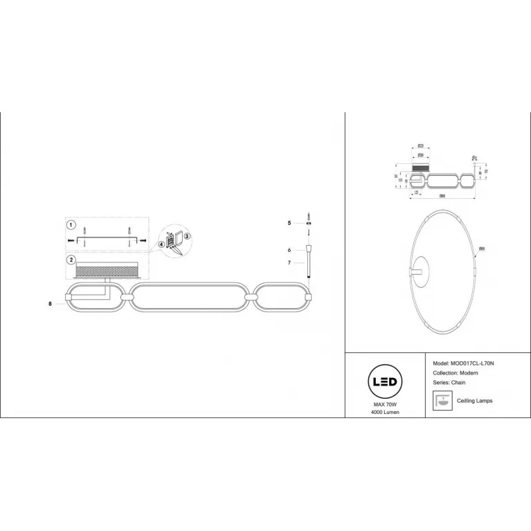 Потолочный светодиодный светильник Maytoni Chain MOD017CL-L70N из серии Chain немецкого производителя Maytoni. В данном светильнике используются лампы с цоколем LED, суммарной мощностью 70 Вт. Модель оформлена в стиле хай-тек (high-tech) и устанавливается на потолок. Она отлично подходит для спальни.