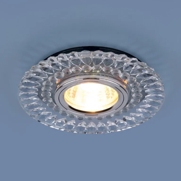 Встраиваемый светильник Elektrostandard 2197 MR16 CL/SL прозрачный/серебро 4690389101021 из серии 2197 китайского производителя Elektrostandard обеспечивает приятное для глаз освещение на площади 1,9 м2. В данном светильнике используются лампы с цоколем G5.3, суммарной мощностью 35 Вт. Модель оформлена в классическом стиле и устанавливается в потолок. Она отлично подходит для гостиной.