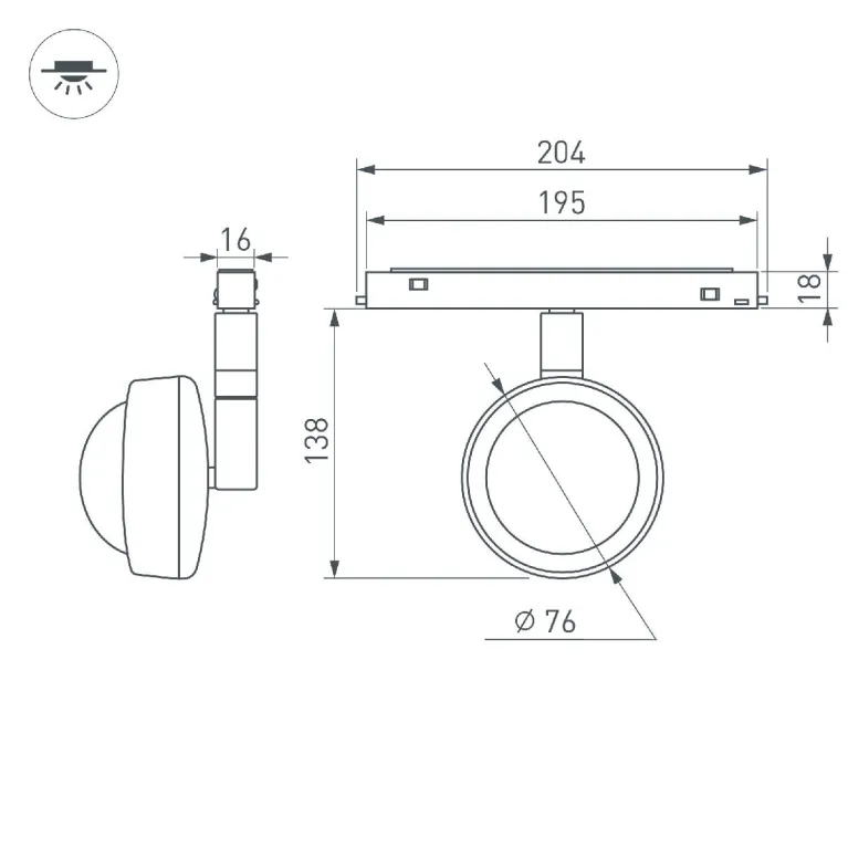 Трековый магнитный светильник Arlight MAG-ORIENT-SUNSET-R76-6W Day4000-MIX (BK, 70 deg, 48V, TUYA) 0