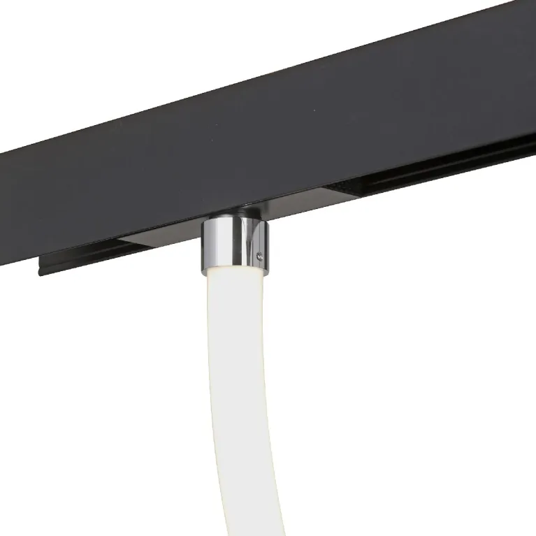 Светильник оснащён одним плафоном цилиндрической формы, который направлен вниз. Это позволяет создать локальное освещение и подчеркнуть определённые элементы интерьера. Цвет арматуры — чёрный, что придаёт светильнику современный вид.
