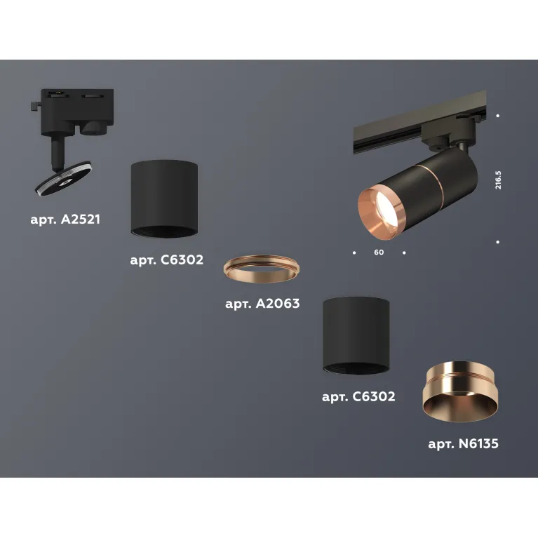 Трековый однофазный светильник Ambrella Light Track System XT6302031 (A2521, C6302, A2063, C6302, N6