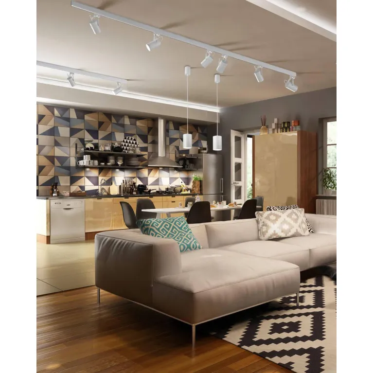 Конструкция светильника предусматривает возможность его установки на шинопровод, что позволяет легко перемещать и изменять направление света, создавая динамичное и адаптируемое освещение.