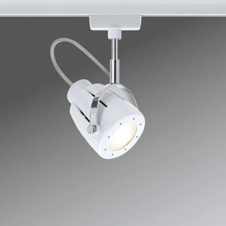 Трековый светильник Paulmann Mega 97699 из серии Mega немецкого производителя Paulmann обеспечивает приятное для глаз освещение на площади 0,6 м2. В данном светильнике используются лампы с цоколем GU10, суммарной мощностью 11 Вт. Модель оформлена в стиле хай-тек (high-tech) и устанавливается на потолок. Она отлично подходит для магазина.