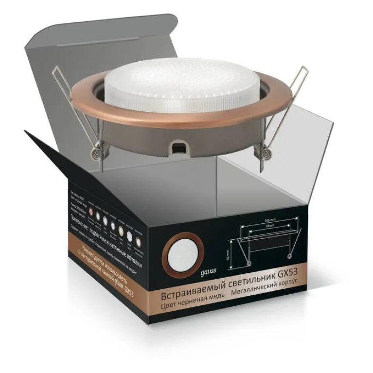 Встраиваемый светильник Gauss GX426103000 из серии Tablet российского производителя Gauss обеспечивает приятное для глаз освещение на площади 2 м2. В данном светильнике используются лампы с цоколем GX53, суммарной мощностью 600 Вт. Модель оформлена в современном стиле и устанавливается в потолок. Она отлично подходит для кухни.