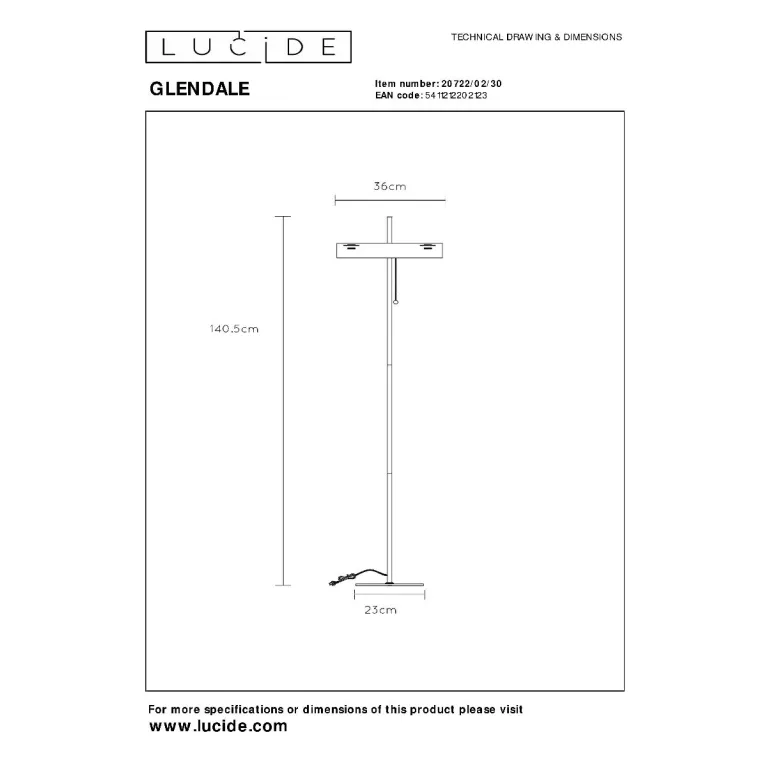 Торшер Lucide Glendale 20722/02/30 из коллекции Glendale бельгийского производителя Lucide - стильный и функциональный осветительный прибор