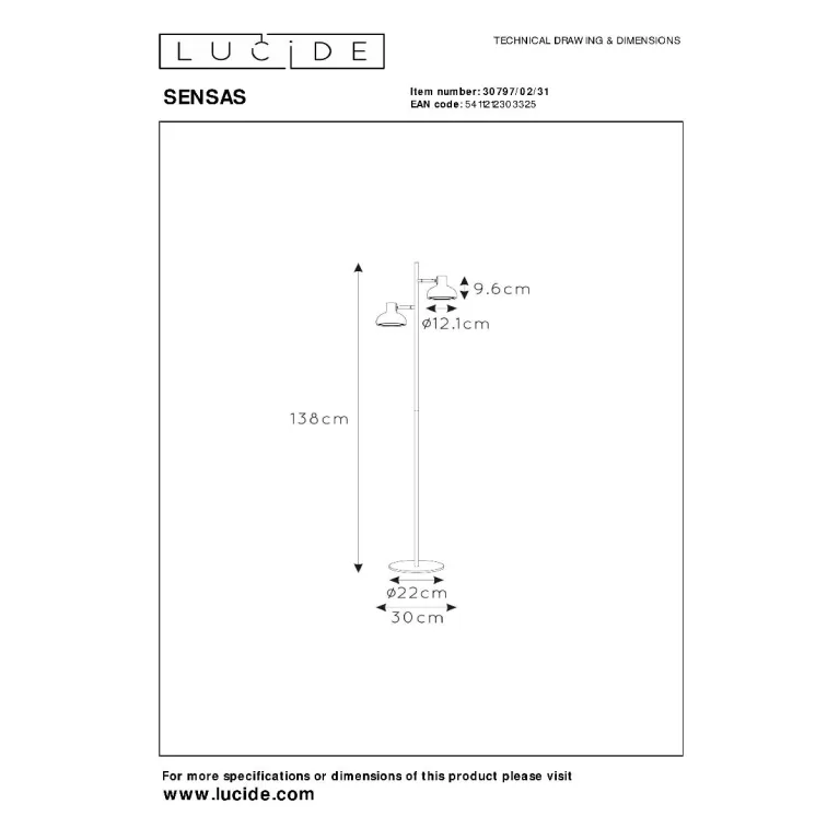 Торшер Lucide Sensas 30797/02/31 из коллекции Sensas бельгийского производителя Lucide - стильный и функциональный осветительный прибор
