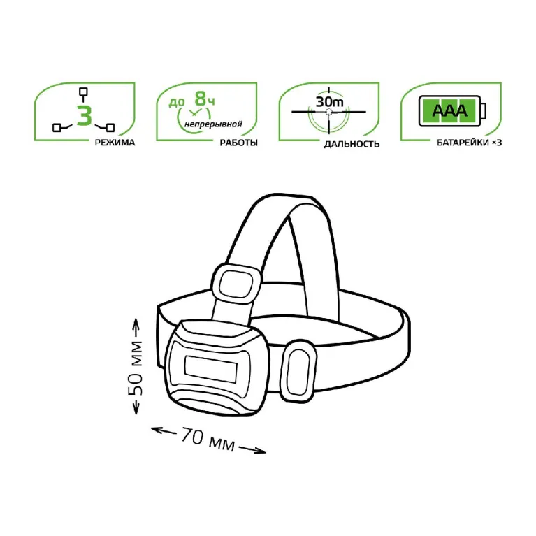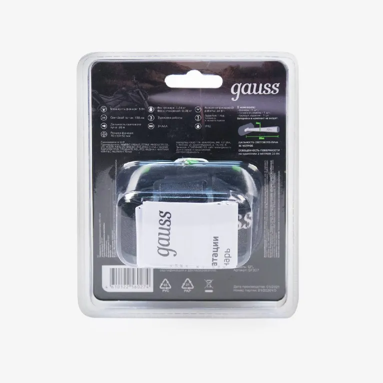 Налобный светодиодный фонарь Gauss от батареек 50х70 180 лм GF307
