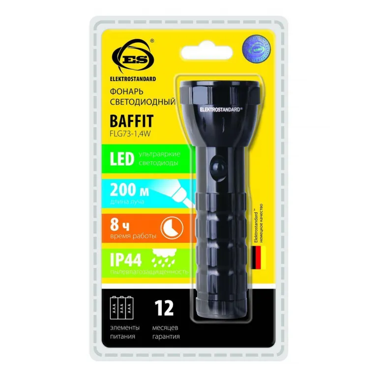 Ручной светодиодный фонарь Elektrostandard Baffit от батареек 137x46 мм, 50 лм — это функциональный и надёжный источник света, который станет незаменимым помощником в быту и во время активного отдыха. Фонарь предназначен для использования как внутри помещений, так и на открытом воздухе, что делает его универсальным решением для различных задач.