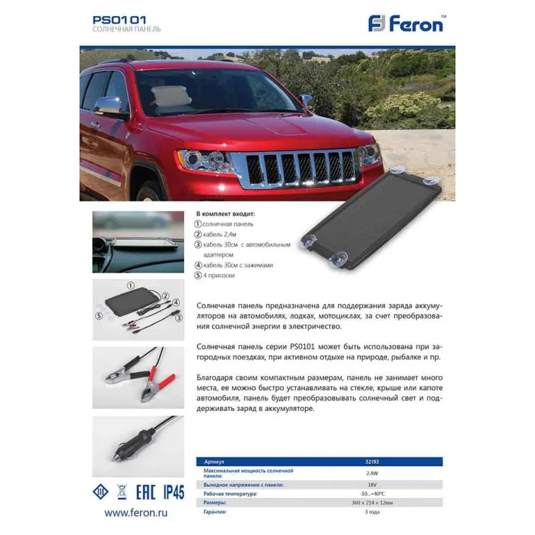Солнечная панель Feron PS0101 32193 российского производителя Feron относится к коллекции «». Модель защищена от пыли и влаги по стандарту IP и подходит для использования за пределами помещения. Она легко устанавливается и обеспечивает оптимальное освещение благодаря общей мощности 2,4 Вт. Интересный и практичный светильник 32193 с плафонами будет долго служить владельцу. Цена при заказе в интернет-магазине «Иллюзия света» – 873 ₽.