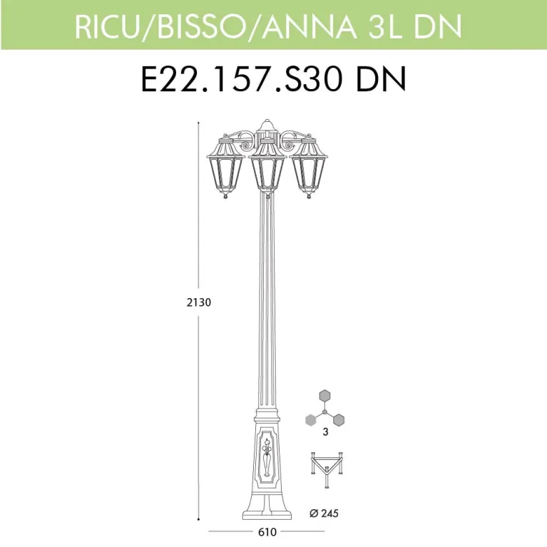 Уличный фонарь FUMAGALLI RICU BISSO ANNA 3L DN — это идеальное решение для освещения вашего сада, парка или придомовой территории. Он сочетает в себе классический дизайн и современные технологии, что делает его универсальным выбором для любого пространства. Фонарь имеет три плафона, которые обеспечивают равномерное распределение света и создают уютную атмосферу. Модель выполнена из качественных материалов, что гарантирует её долговечность и надёжность.